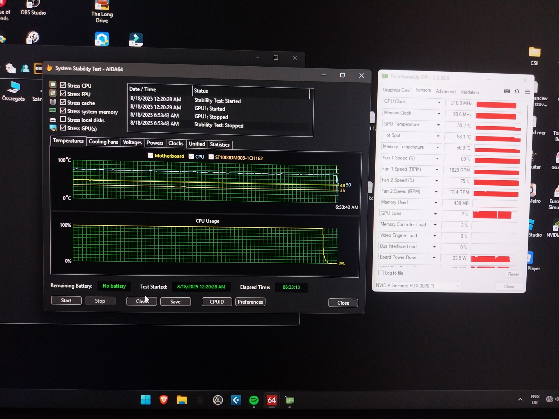 Menet közben hirtelen fekete képernyőSziasztok!Adott az alábbi konfig: Asrock alaplap B550M Phantom Gaming Ryzen7 5800X RAM: GSkill 3200 (2×16GB) VGA: Gigabyte 3070TI PSU: Coolermaster 700W Alap probléma, hogy idönként elmegy a kép és csak újraindítassal lehet újra képet varázsolni (vagy esetenként több ismetelet újraindítás). Tegnap viszont eljutottam odáig, hogy a gép elindult de nem bootolt, ha lehúztam róla minddn vinyót akkor sem. Ezek után kivettem az egyik RAM-ot és így már hajlandó volt elondulni. Memória hibára gondoltam így a Memtest86-it próbaltam futtatni, ZSB-röl szépen bebootolt a Memtest és a gepbdn lévö 16GB memóriát rlkezdte tesztelni. Futott is a teszt hiba nelkül kb 2 órája amikor el kellett nennem othonról így otthagytam a gépet honfoltamajd megnézem a vegeredményt de sajnos mikor pár óra múlva leültem a gèphez a monitor már alvó üzemmodba vokt és ndm lehetett sehogyan se èletre kelteni de a gép nem kapcsolt ki. Újra akartam futtatni a tesztet ami elindult de mivel most sem tudtam a gép előtt ülni kb 1 óra elteltével a monitor rlment aludni gép ment továb de semmire sem reagált. Próbáltam többször is elindítani a tesztet de ezek után már 5-10bprrc rlteltével lekapcsolt a monitor. Bios-ba belépve lehet én nem láttam jól de mintha a típusnál DDR4-2660-as típust írna de alapból frlismeri, hogy 3200MHz-es. Mivel nem tudtam mast manuálisan beállítottam a RAM-ot 2600MHz-re és elindítottan egy Aida64 rendszer stabilitás tesztet ami egész ejdzaka futott gond nèlkül. VGA-t mar korábban tóbbször teszteltem Furmark-al de nem vokt vele orobléma. Kiugró hömérsékletet ndm tapasztaltam. Találkozott valaki hasonlóval, mit érdemes még megnézni? Segítségeteket előre is köszi.