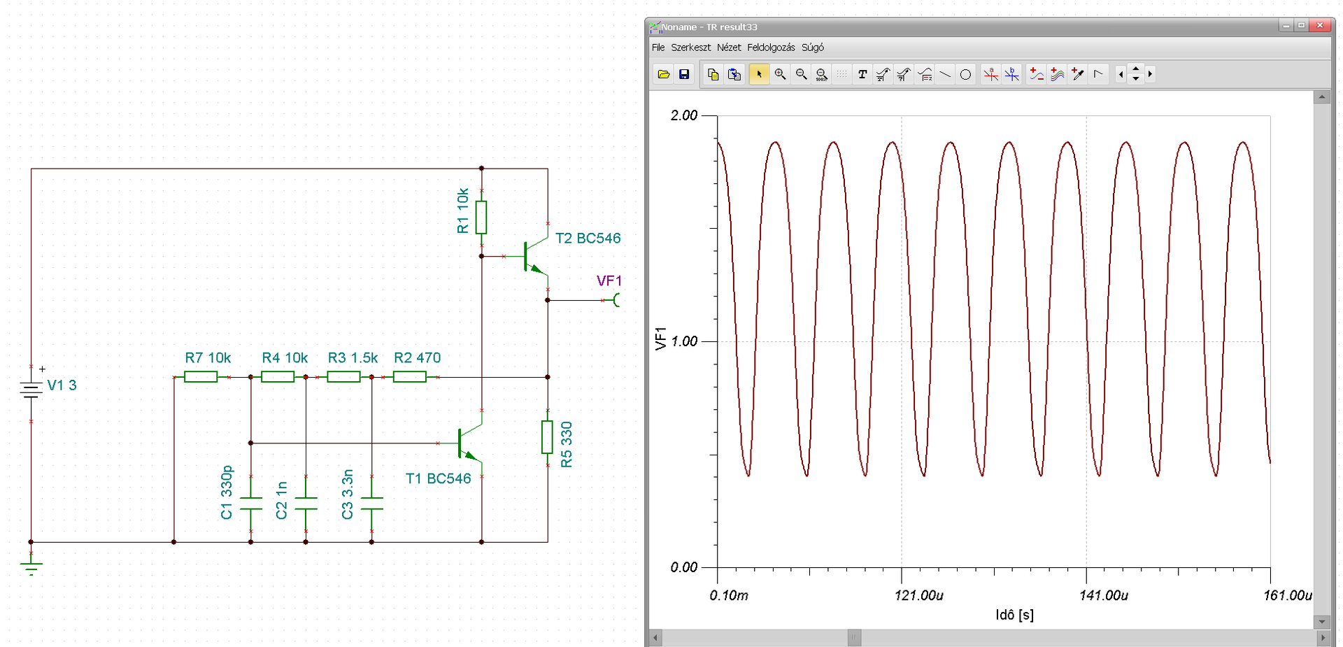 Ez megközelítően a tápfesz fele, tehát jó lesz. A T1 kollektora kb ennél 600mV-al lesz magasabb, de magától be fog állni, mint ahogy a 600mV bázisfeszültség is.