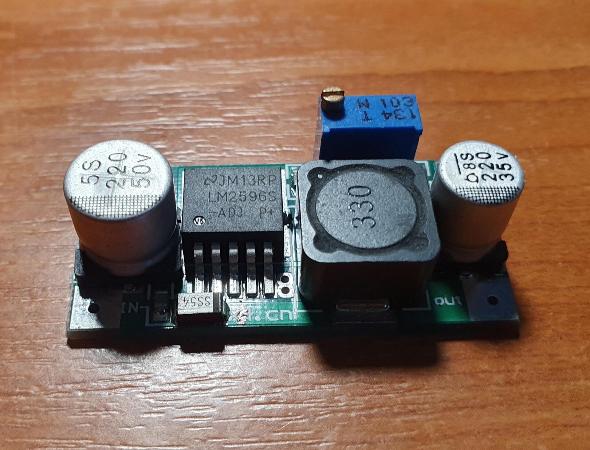 10 kΩ, oda, ahol a helye van. Ha LM2596S. Az enyémben az, csak a kis szégyenlős nem hagyja magát fényképezni.