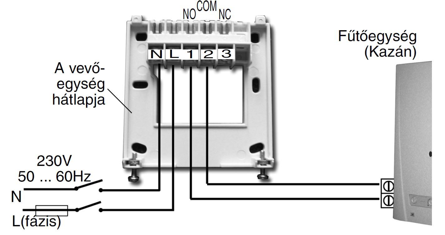 A vevő résznek van egy 230V-os tápbemenete...meg egy mindentől független váltókapcsoló kimenete.