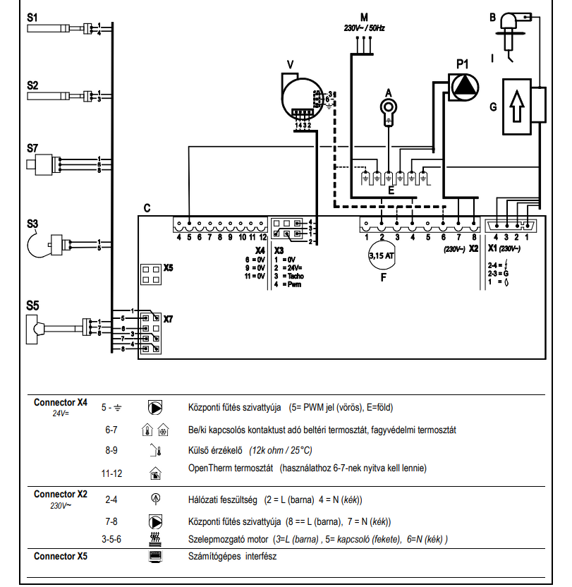 Rosszul fogalmaztam a termosztátból kiinduló 1-2 (NO,COM) vezetékről beszéltem. Az ment a kazánba az X4 oldalon a 6-7be.
