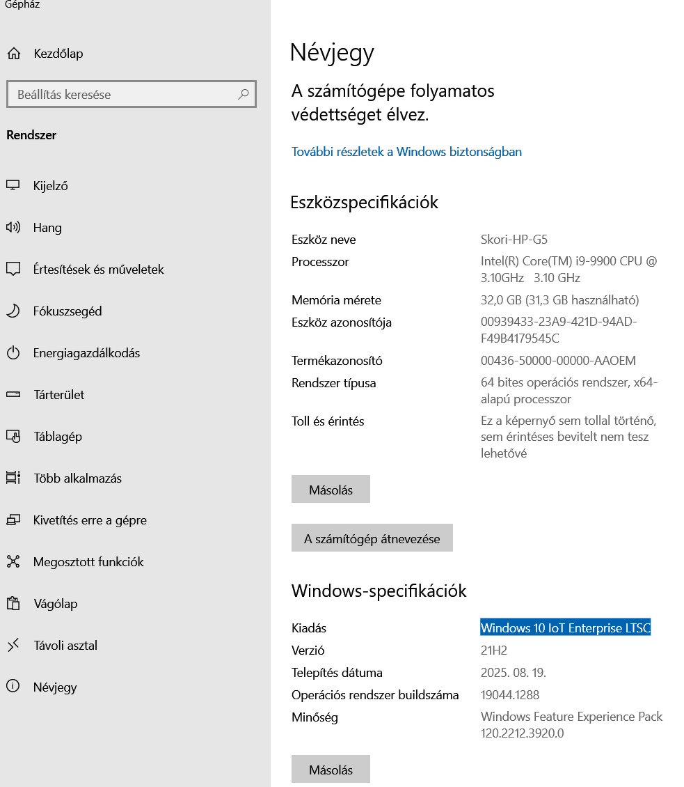 "Windows 10 IoT Enterprise LTSC"-t ír ki névjegy oldalon. A hozzászólás módosítva: Aug 26, 2025