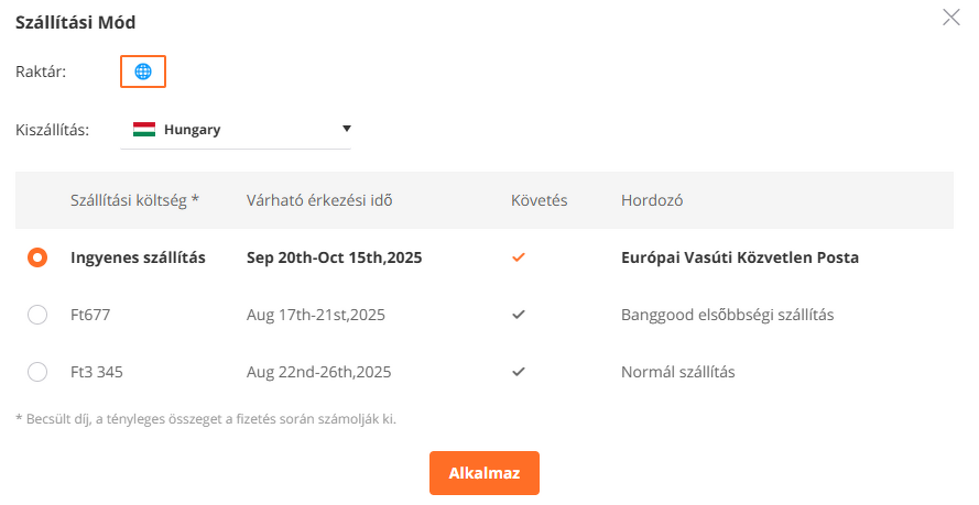 ![]() Viszont most nézem, van a Banggood-on más szállítási mód is, az már jóval barátságosabb.
