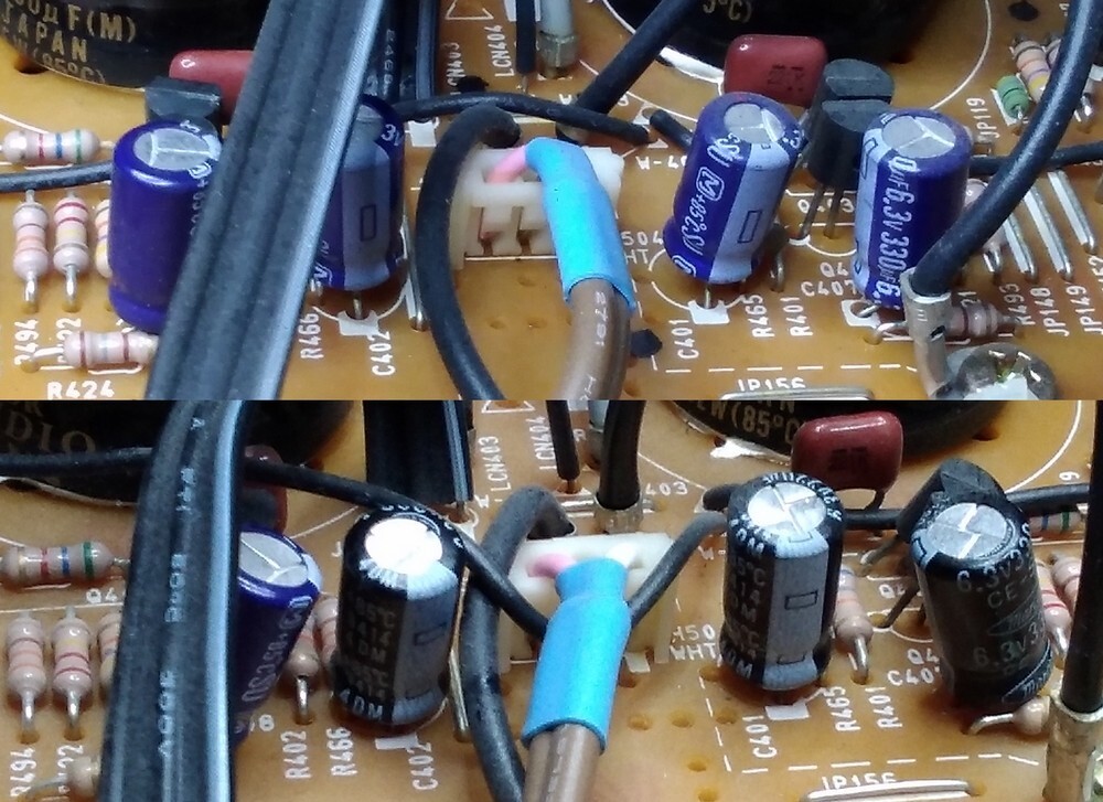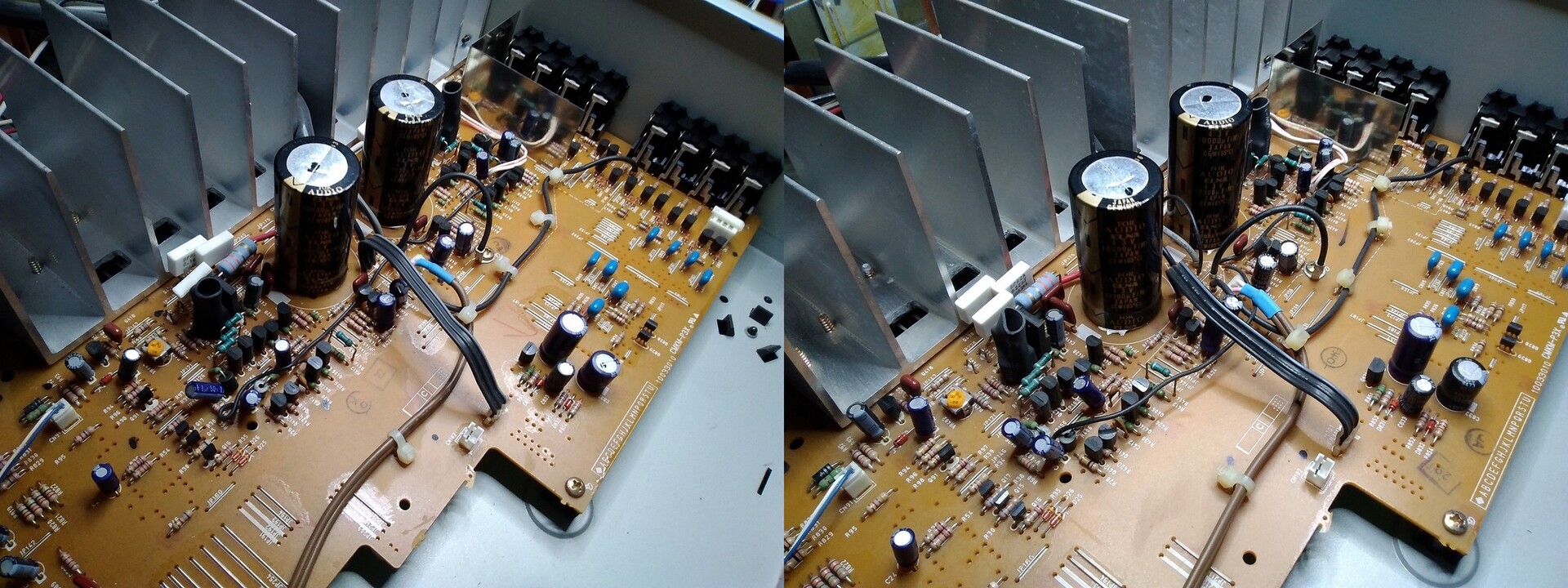 Nos, ég és föld a két, egyébként tökéletesen megegyező kapcsolású erősítő hangja. Aki nem hiszi, járjon utána. Amelyikben a Matsushita elkók vannak az jól szól, amelyikben a Marcon elkók az meg egyáltalán nem szól jól. Ami még érdekes lehet, hogy abban nem mind a 4 elkó más hanem csak 3, és ez a későbbi sorozat, azaz olyan érzésem van, mintha kifogyott volna a jobbik elkó a raktárból, és aztán kezdték el a maláj kislányok (vagy az ültetőgép) beültetgetni a rosszabbat.