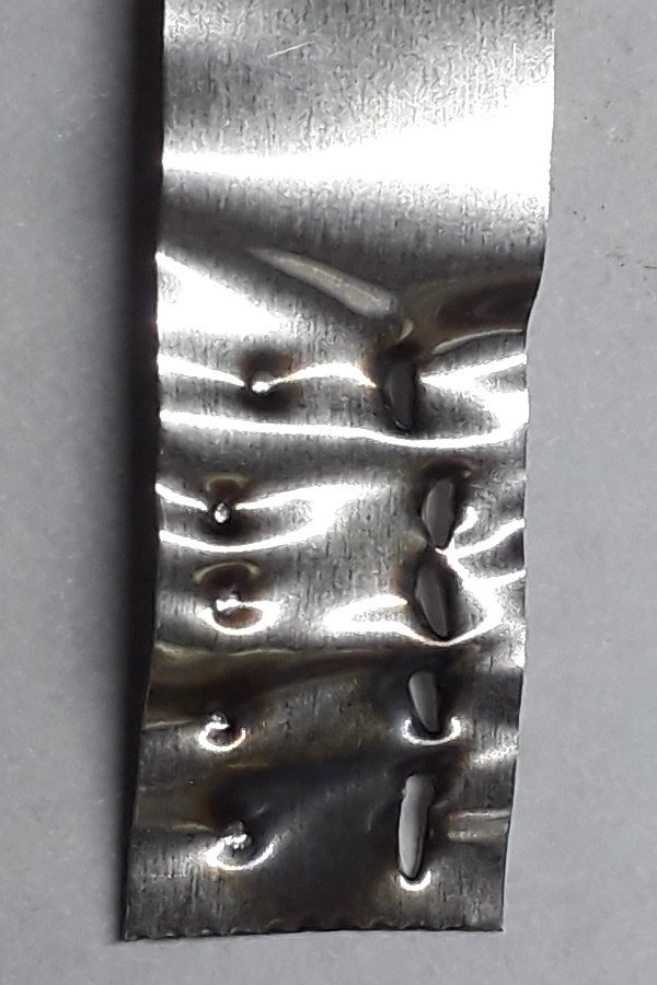 Igen a nyomástól behorpad amikor egy pillanatra felizzik és kilágyul az anyag, holott a ponthegesztésnek az egyik paramétere pont a nyomás lenne, ennek ellenére úgy tűnik pont fordítva működik a dolog.