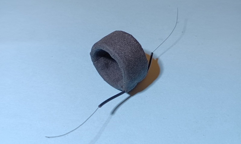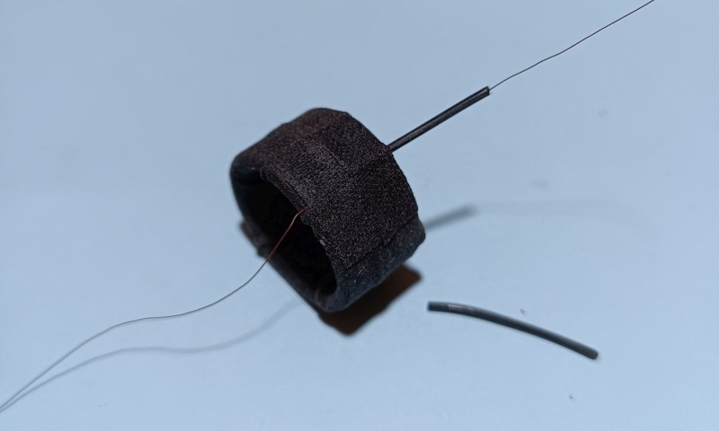 3/4-es gázcsőből levágtam 15 mm-t, leszigeteltem (a szövetszalag nagy előnye, hogy kívül is ragad kissé, így szépen megtartja a már feltekert meneteket), 0,15 mm-es zománchuzalból rátekertem 100 menetet (könnyebb számolás érdekében), majd ismét leszigeteltem.