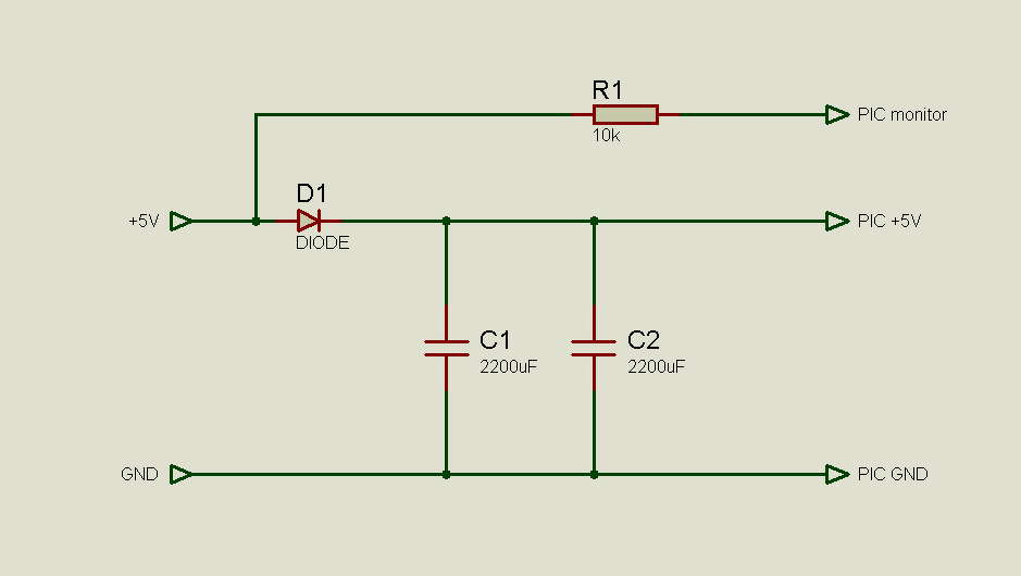 Ha olyan külső eszköz közvetlen csatlakozik a PIC-hez amelyiknek aktív H kimenete van (pl. UART TX vonal), akkor biztos ami biztos alapon azzal is sorbakötve egy 1 kΩ-os ellenállás, mert ott előbb jelenhet meg a feszültség, mint a PIC táplábain. Bekapcsoláskor minden láb bemenet. Ez egészen addig így is marad és pörög magában a kontroller, amíg figyelő lábon minimum 4 V meg nem jelenik (5 V tápfeszültség esetén)*. Ha ez megvan, akkor a láb felügyeletét átveszi egy komparátor és indulhat a program lényegi része. Tápfeszültség elvesztésekor a komparátor generál egy megszakítást, a megszakításban minden lábat bemenetre kapcsolok, mentem az adatokat és RESET(); A 4400 µF viszonylag sok, újraindításkor megeshet, hogy a kondenzátor még életben tartja a kontrollert, viszont a tápegység már nem szolgáltat energiát. Erre az esetre (is) jó a bekapcsoláskori figyelés. * Én újabb kontrollereket használok, azok alacsonyabb feszültséggel is elindulnak, nálad nem lesz elég a 4 V-os küszöb. A hozzászólás módosítva: Okt 19, 2025