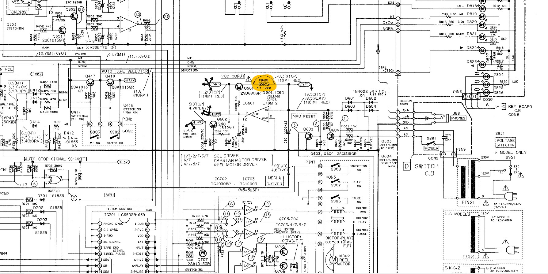 40 év alatt, volt ideje kiszáradni. A nyers tápfeszültség még új korában is 1-1,5V-t esett, a terheletlen állapothoz képest, ha valami funkció be volt kapcsolva. Lehet, hogy az L78M12 nem tudja szolgáltatni a 12V feszültséget, mert a bemenő feszültsége nagyon lecsökken.