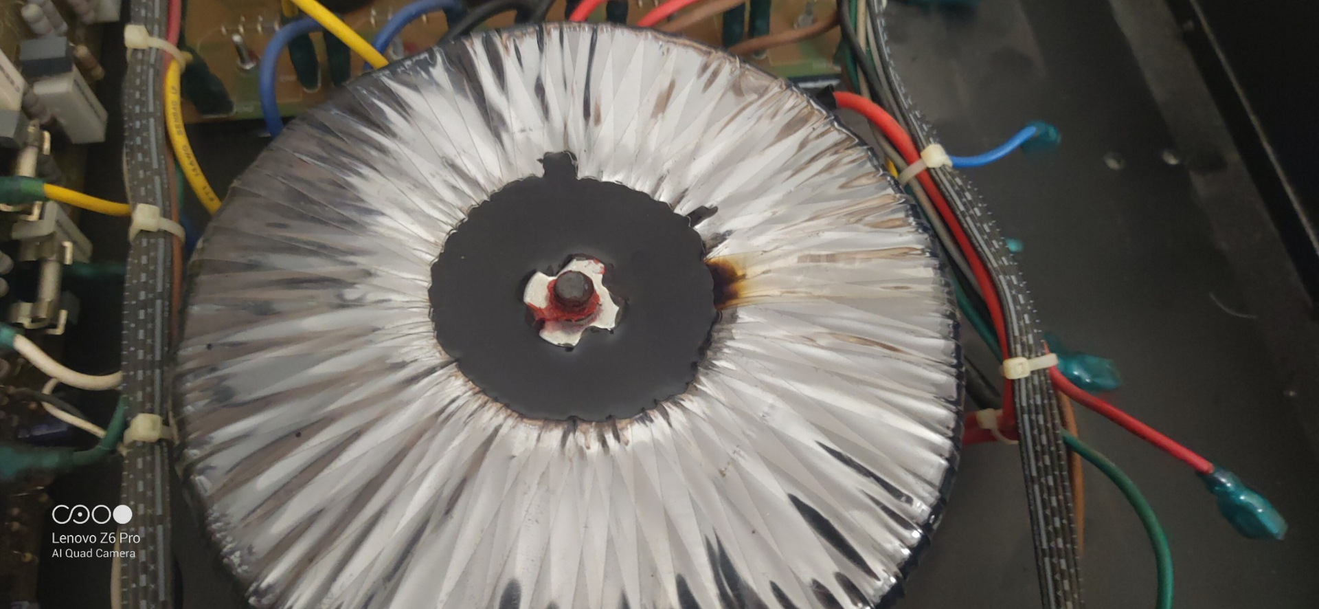 Nemtudom mennyire rosz jel a toroid tetején van egy égésnyom.De a feszültségei rendben vannak.Mellékeltem a képet nemtudom ez okozhat e galibát.