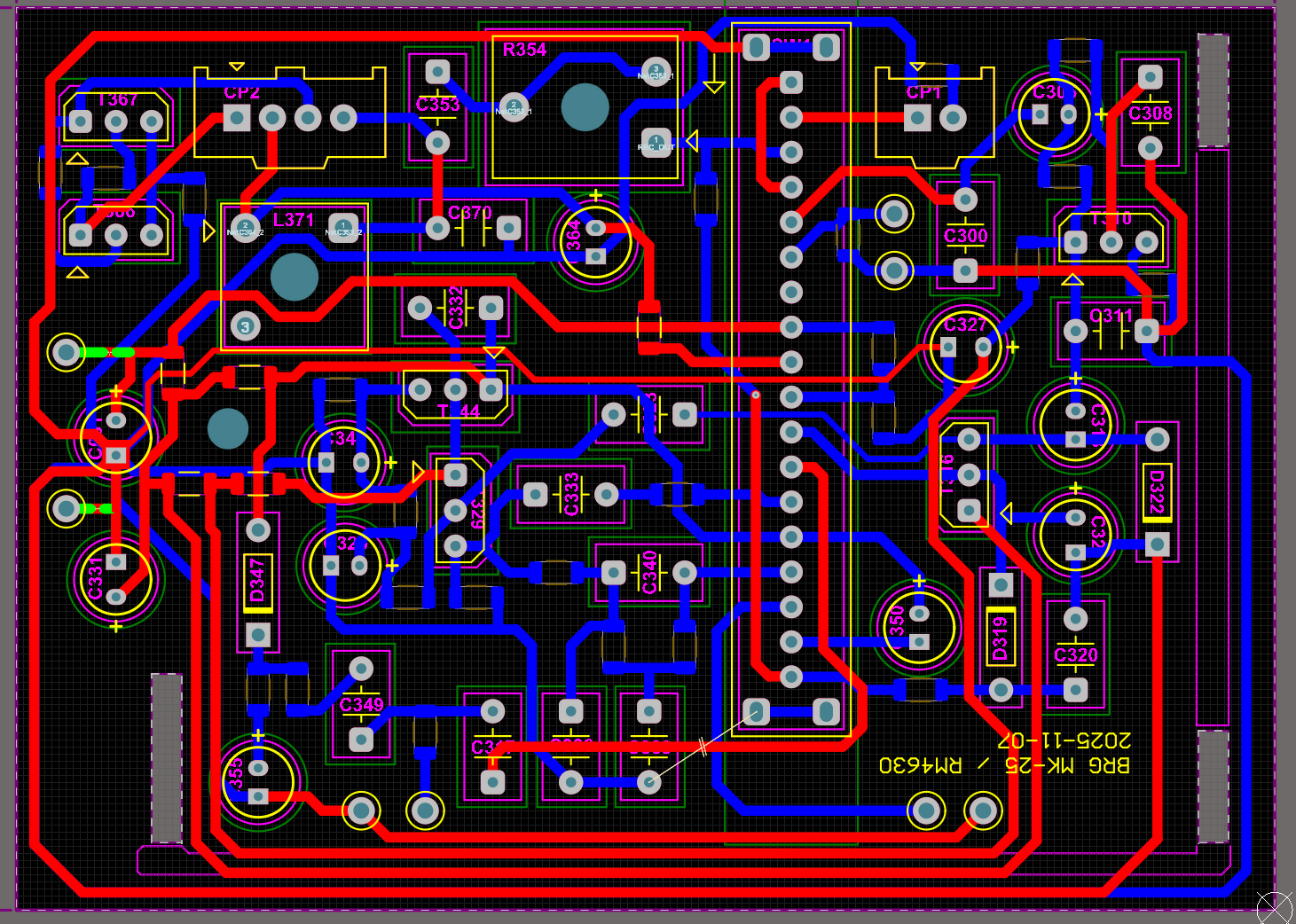 Magnó panel ellenőrzéseSziasztok!A mellékelt kapcsolást tervezem újraépíteni (régen ugyanilyen magnón felvett, más készülékekben elég éles tónusú felvételek archiválására kell a konkrét típus - de ha már belefogtam, megcsinálom úgy, hogy menjen a felvétel is). Szeretnék kérni egy panelterv ellenőrzést, főleg a földelési koncepciót illetően. A cél az volt, hogy csillagpontos legyen, legalább egységenként (pl. törlő-oszcillátor, előerősítő, kimeneti fokozat) külön szálon vezetve a GND-t a tápszűrő elkóig. És persze a végcél, hogy minél kevesebb búgása legyen (A teljesség kedvéért kiegészítem annyival, hogy vagy akkuról fog menni, vagy egy külön panelon levő tápegységről, amiben lesz még egy 2200 µF-os elkó, és két vezetékkel fog csatlakozni ennek a táp bemeneteire.)* A fémházas átkapcsoló szándékosan csak egy ponton van bekötve a földelésre. A hozzászólás módosítva: Nov 7, 2025