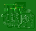2 helyen vágtam el a vezetősávot. Fekete vonallal megjelöltem. A kondi negatív lábát összekötöttem a jel GND-vel. Az előfokról kapja a GND-t. Teljesen csendes lett.