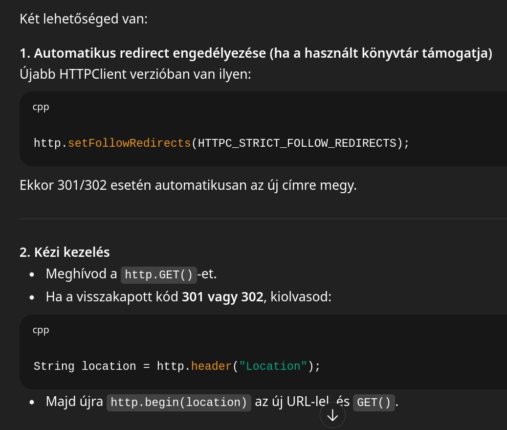 Kipróbáltam a linket. Böngészőből (firefox) lejön, a célhardver (ESP) nem tölti le. Hibát dob. Pedig kap IP-t kap netet.