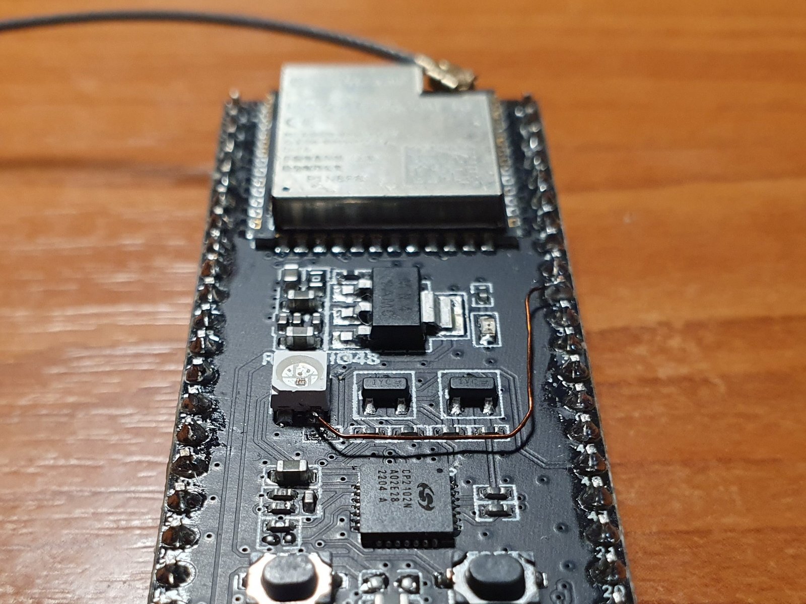 Más: kiderült, hogy az S3-asból annak idején 1.0-ás hardverváltozatút sikerült vásárolnom, kettőt is. Azokon a chip 48-as lábára volt kötve a WS2812B RGB LED, ami, ahogy később rájöttek, zavarta az SPI memóriákkal való kapcsolatot, így áttették a 38-asra.