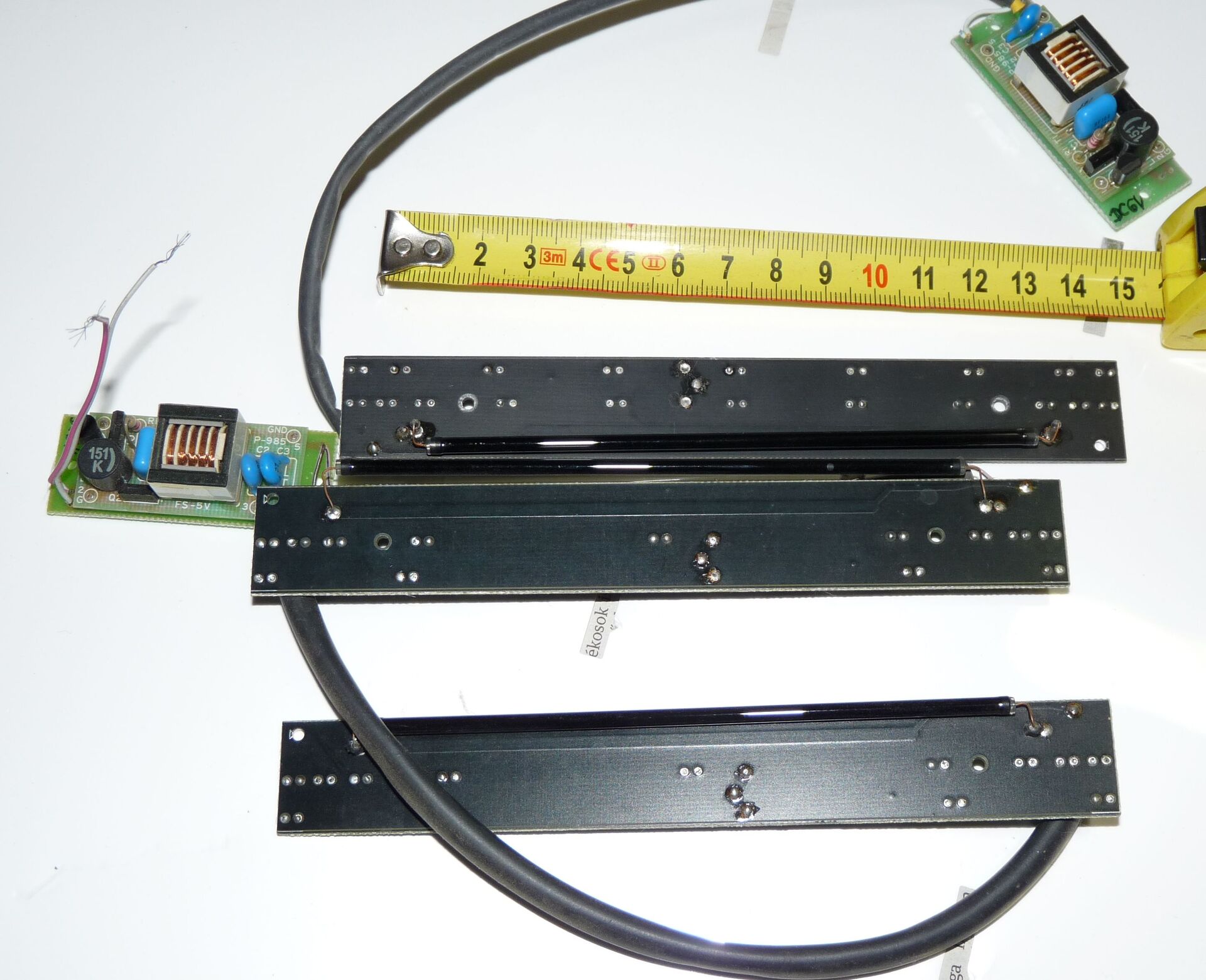 Tovább bővült a csomag. 3 db hibátlan UV cső, 2 db dupla kimenetű meghajtóval. 6-10 V DC tápot igényelnek. (A pakolászás közben egy cső már összetört, ezért az egyikhez csak egy van.)