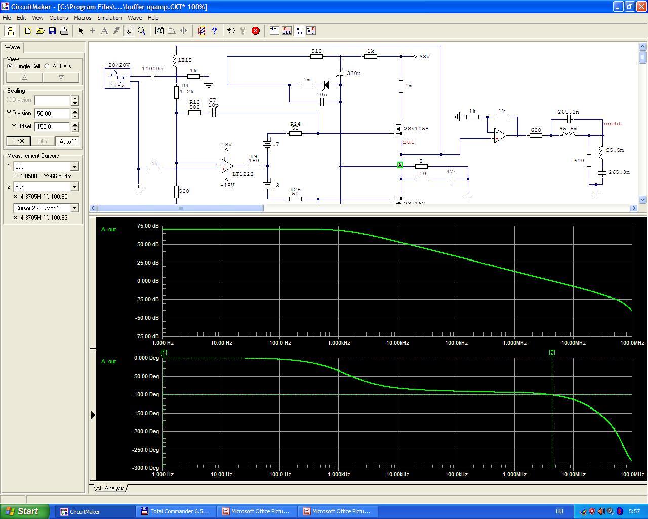 Nem értem a problémát. Itt sem lóg ki a tápfeszből a bemenet mert az LT1223-nak 10kHz-en van a domináns pólusa, az MC33078-nak meg 10Hz-en. De lehet mást nem értek (nem túl gyors a felfogásom.)