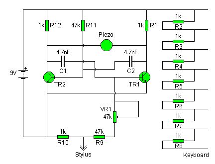 Azért kezdtem foglalkozni ezzel az eszközzel mert egy igazán jó (zenész)barátom problémájára szeretnék egyszerű olcsó megoldást találni egy fejhallgatóval is használható gyakorló "hangszerrel". A mellékelt kapcsolások ha jól gondolom egy egyszerű hanggenerátorok. Nem szeretném semennyire bonyolítani a dolgot, semmiképp sem célom a profi hangminőség, vagy a már létező villanydudák lemásolása. Ehhez várnék további ötleteket amivel javítani, bővíteni lehet. (pl.: nem találtam megoldást a síp lyukainak megfelelő érintő kapcsolókra) Ha netán mégis van hasonló téma akkor elnézést.