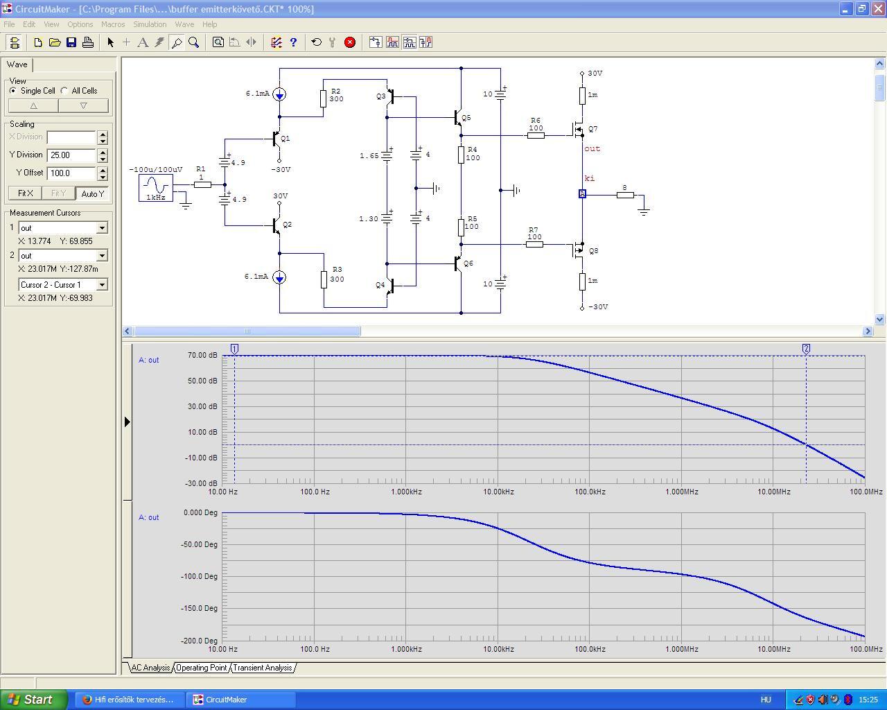 Összerajzoltam a VAS-t a bufferrel. Nem nő jelentősen a THD (100kHz-en 0,3%).