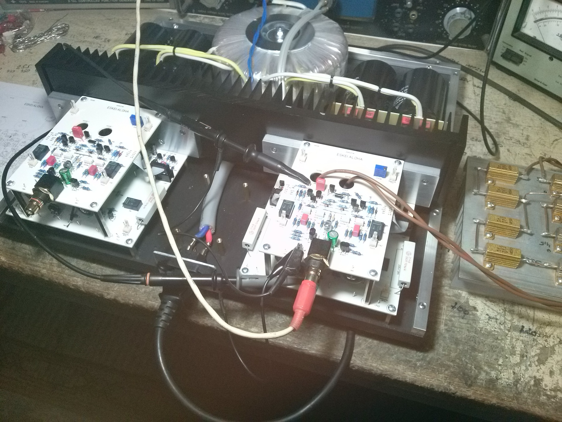 Idézet: „Te amúgy szívbaj nélkül csinálsz tized százalék alatti torzítású erősítőt, azaz 10A csúcsáramnál 10 mA javító áram elég.” De ennek a 10mA hibaáramnak a terhelésen kell átfolynia, azaz ott kell kioltani a torzítást. Ha terhelés 8R, a kimeneti ellenállás 0.1R, akkor 81-szeres áramnak kell folynia a hibajavító áramkörön: tehát 810 mA-nek.