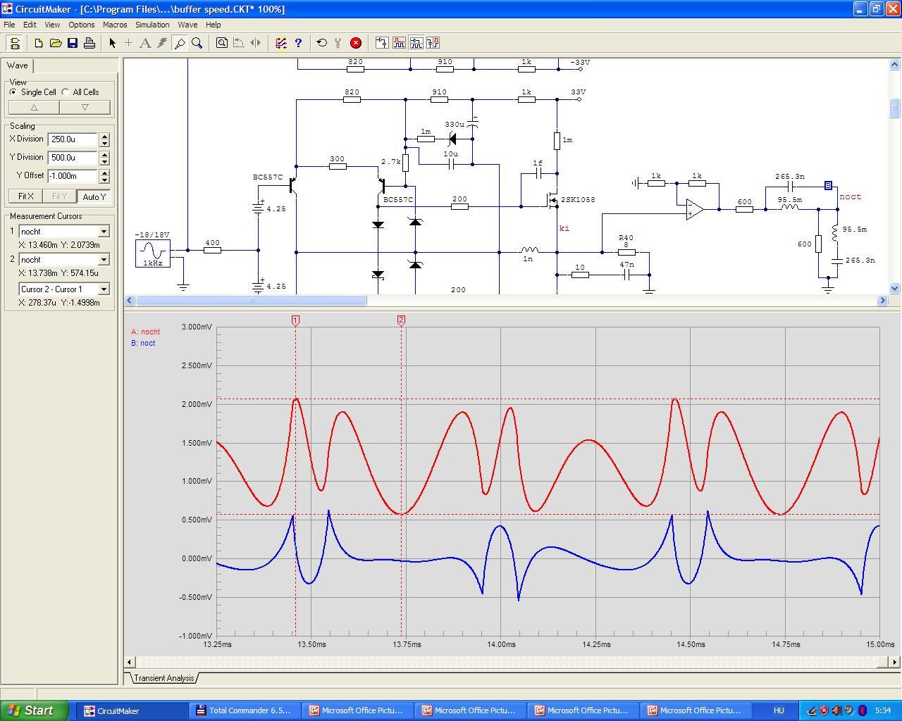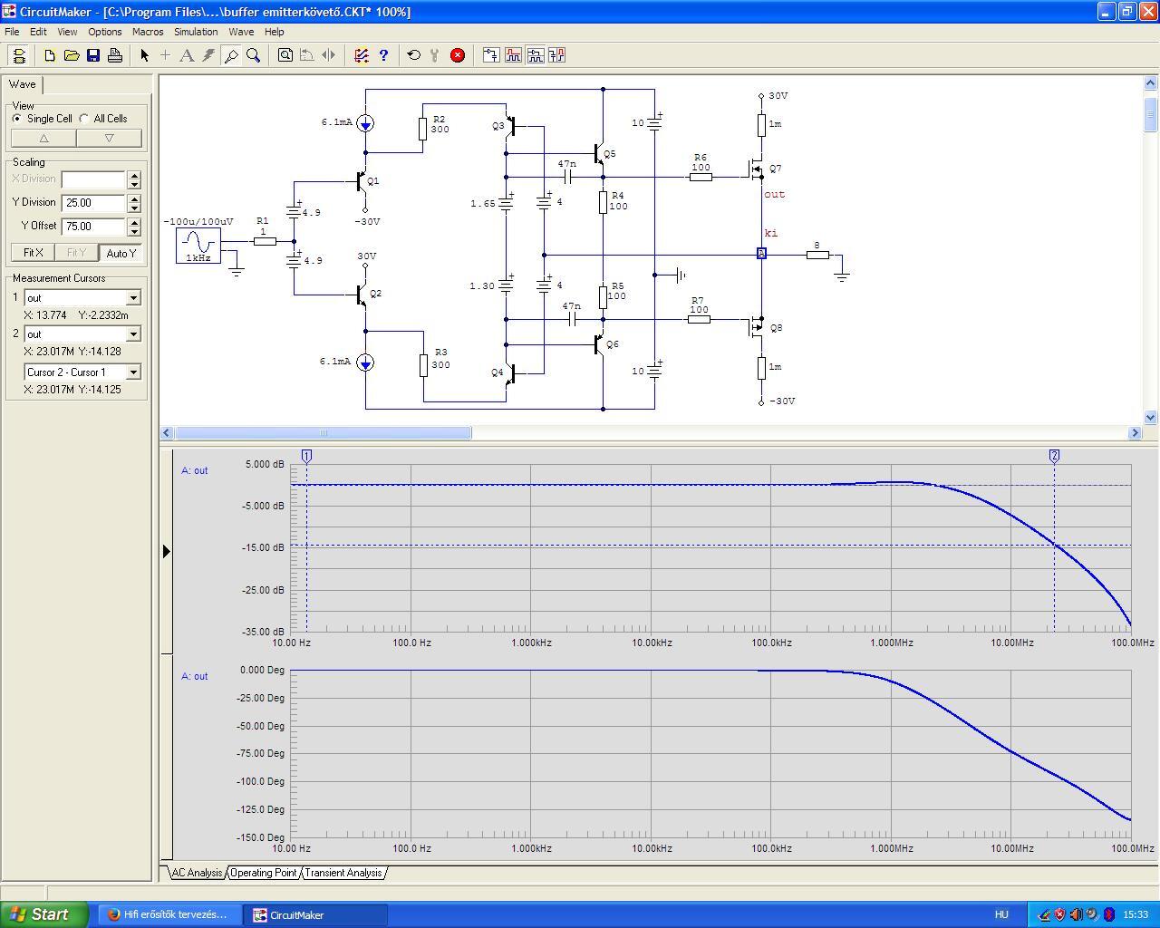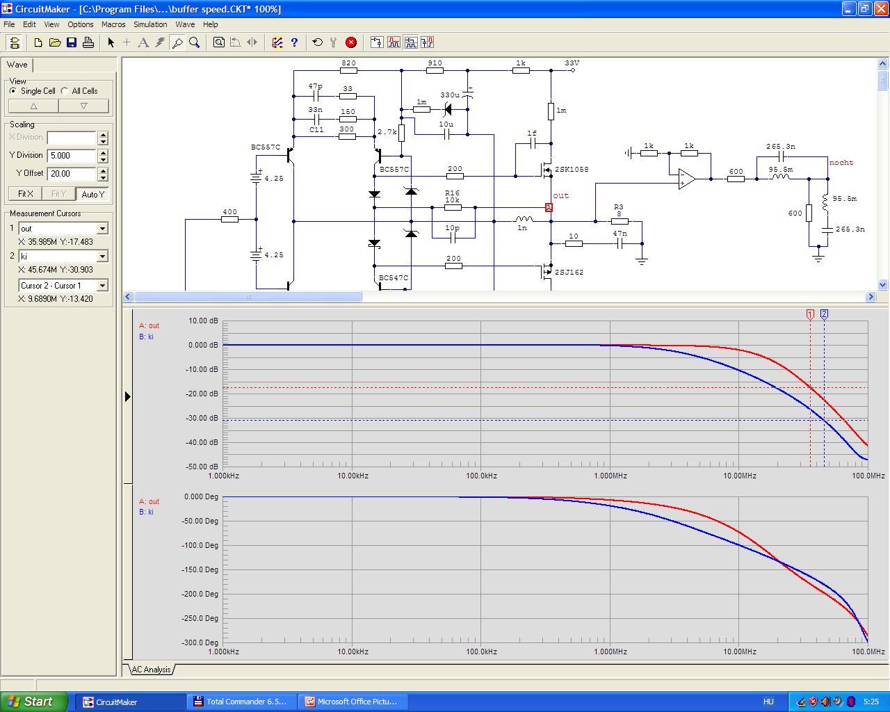 Továbbra is buffer. Igazolódni látszik az elméletem, de még más kapcsolásokat szimulálni fogok ellenőrzésképpen. Abban az ötször egymás utáni hsz sorozatomban azt állítottam, hogy a torzítás csökkentésében nagyobb szerepe van a sebességnek (a késleltetésnek), mint a visszacsatolási tényezőnek.