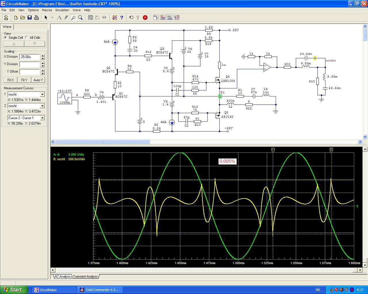 Összerajzoltam a VAS-t a bufferrel. Nem nő jelentősen a THD (100kHz-en 0,3%).