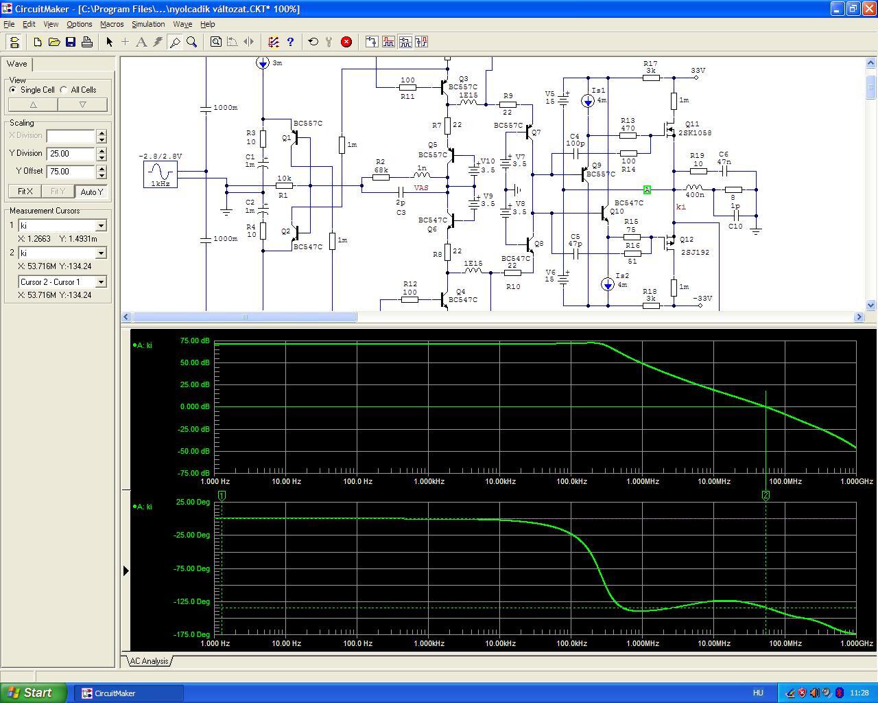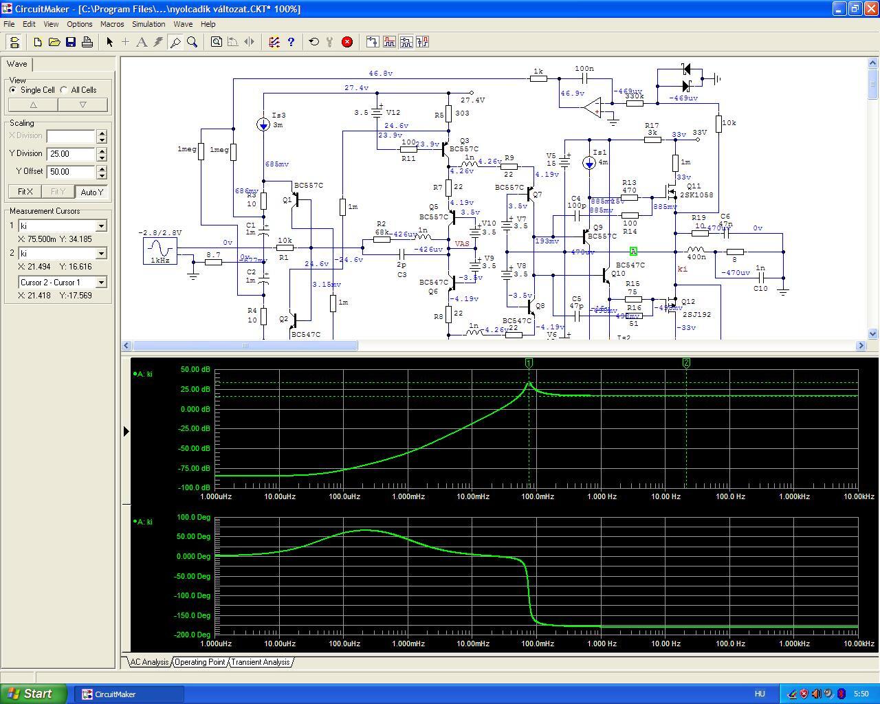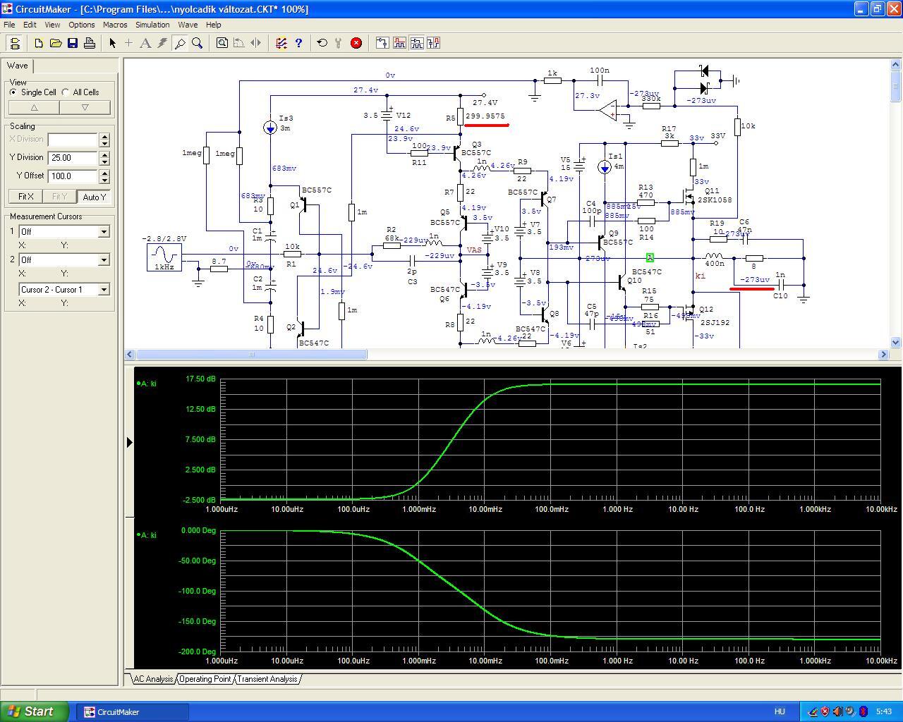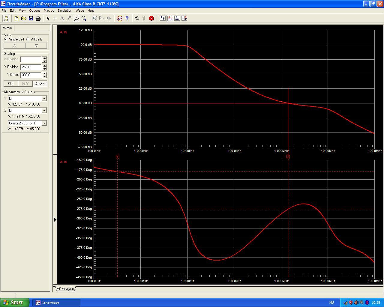 Leszimuláltam Mzperx "B" osztályú végfokát. Három pólusú kompenzáció. Elég tanulságos.