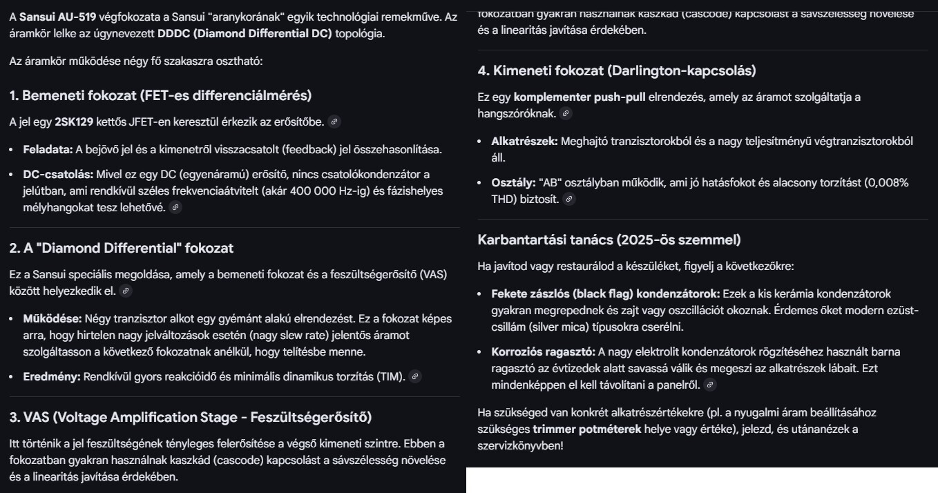 Ha nem figyelünk elmegy mellettünk a világ. Beszélgettem kicsit az AI-val megint, pár dolgon felbuzdulva. Már most képes arra, hogy megadom neki egy erősítő típusát, ő megkeresi magának a kapcsolási rajzot (ha létezik), azon felismeri az alkatrészeket, és ha mondjuk LTSpice-t használnék még arra is képes lenne, hogy az egészből listát készít, beilleszti az áramkörszimulátor programba, és a kérdések alapján segít mondjuk az áramkör fejlesztésében alapvető dolgokban, pl. hogy hogyan mehetne alacsonyabb tápfeszről stb.