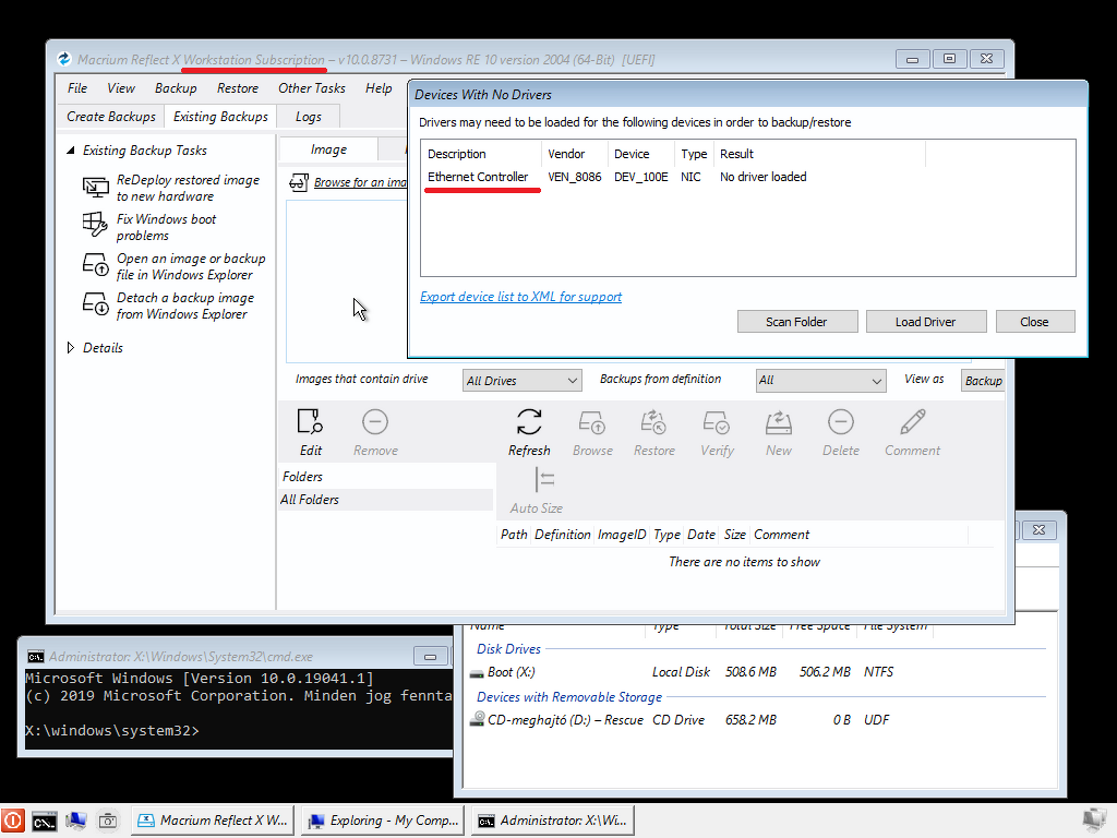 Ez egy nagyon régi Macrium verzió, és PE, nem RE. A PE-vel nincs gond.