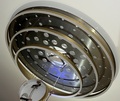 4-8 db kis finom hatlapfej furatú kis hernyócsavar tartja a fényáteresztő plexigyűrűt a mattírozott körökben. Az U profilú körtartók fenekén vannak benne a LED-csíkok, ezek mindkét végen meg vannak táplálva - ahogy én most látom kibontás után. A felső fémlemez alapot én vágtam ki lézerrel, és matt fehér lesz - majd egyszer az életben. Ez csak takaró és díszítő elem. Csak ezer mással foglalkozom mindig. Nagyon szép szórt fénye van egyébként, ezért utálom hogy mielőtt készen lenne, már a meghajtó meg is döglik. Legrosszabb esetben veszek teljesen új LED-csíkot, és komplett kicserélem az világító elemeket a gyűrűkben. Most néztem már a MosFet-et, kapható itthon is, ez lenne a leggyorsabb, ha kiforrasztanám és kicserélném. Holnap kimérem, van-e bennük zárlat.