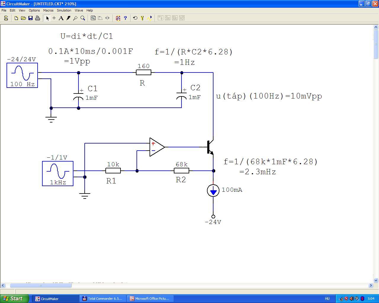 Nem voltam ma gép előtt. Úgy láttam a szimulátorban, hogy a tápszűrő kondinak nincs alsó határfrekvenciája. Mindig tartja a 90 fokos fáziskésést, frekvenciától függetlenül. De még utána kell járni ennek a dolognak, nem akarok hülyeséget írni.