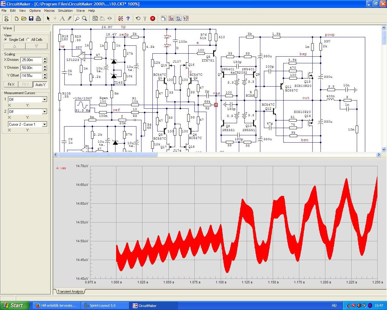 A szimulátor csak akkor mutat brummot az LT kimenetén ha C1-4-et a tizedére csökkentem. Az eredeti értékekkel a stab kimenetén van 0.3 uVpp brumm, a VAS kimenetén pedig 0.3 nVpp. Mit kell ezen még csökkenteni? A hozzászólás módosítva: Dec 7, 2025