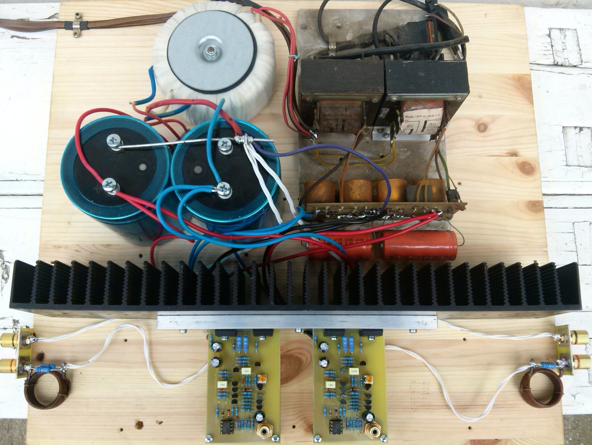szóval bocs ezért, de a deszkamodellen látható alkatrészekből szerintem pár dolog kitalálható. Hogy ezen kívül mennyi publikus, annak eldöntését TG barátomra hagyom. Nekem egyelőre továbbra is elegendő a kis D osztályú amit évek óta hallgatok, számomra egyszerűen csak arról szól, hogy kár lett volna a "polcon hagyni" ennek az erősítőnek az ötletét. Persze lehet, hogy egy kisebb teljesítményű, sztereó változatot majd összedobok valamikor, hogy nekem is legyen egy referenciám.