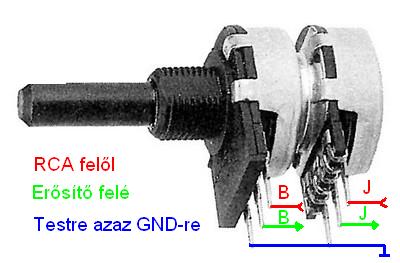 A poti bekötése, esetleg típusfüggő lehet. De általánosságban a középső lábon van kivezetve a csúszka. A csúszkáról veszed le a jelet. Amikor hallkítod, a tengelyt ballra forgatod, tehát oda kell a GND. És természetesen a másik felére a bemeneti jel. üdv! proli007