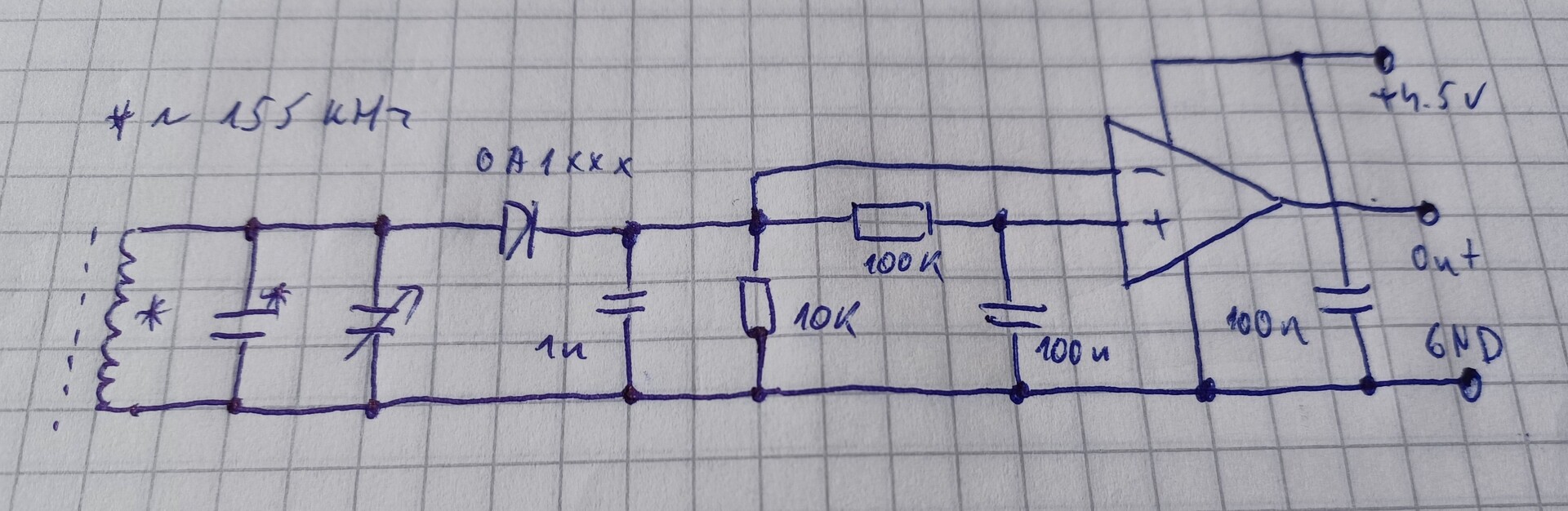 Én egy régi hosszúhullámot is tudó zsebrádióból indulnék ki. Annak a ferritrúdján elvileg rajta van a tekercs hosszúhullámú vételhez ismert paraméterekkel (a rádiónak ha megvan rajza ki lehet számolni), azok a rádiók emlékeim szerint 150kHz környékétől indultak, nem hiszem hogy lehetetlen küldetés lenne azt a kb. 20kHz-et lejjebb hangolni. Persze az FSK miatt a tekercsen kívül mást nem is tudnál belőle hasznosítani de akkor nem kéne RLC mérő.