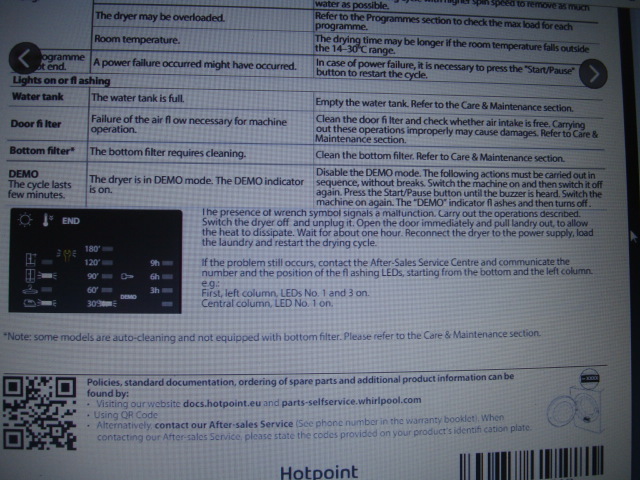 Indesit hibakódSzervusztok, Indesit NTM1081 típusú szárítógép hibakód megfejtésében kérek segítséget, a szárítógépes fórumra fel is tettem, de ez a fajta kezelő nem csak szárítógépen van, ezért ide is felteszem.Mellékelt fényképen látható kijelzőn a világító LED-ek kombinációja utal a kódra hogyan lehet meghatározni ?