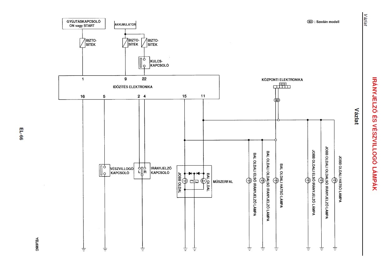 Most néztem az időzítés elektronika 0,4 voltot tart a 2-es és 4-es kimentén. És amikor kapcsolom az egyik oldalra az irányjelzőt, akkor az irányjelző kapcsoló arra a vezetékre 0 voltot kapcsol az elektronikának, viszont ilyenkor a másik odali vezetéken a feszültség leesik 0,23 voltra. Ezeket vettem észre. Az autó egy 2003-as Nissan Almera N16. A hozzászólás módosítva: Sze, 8:42