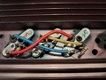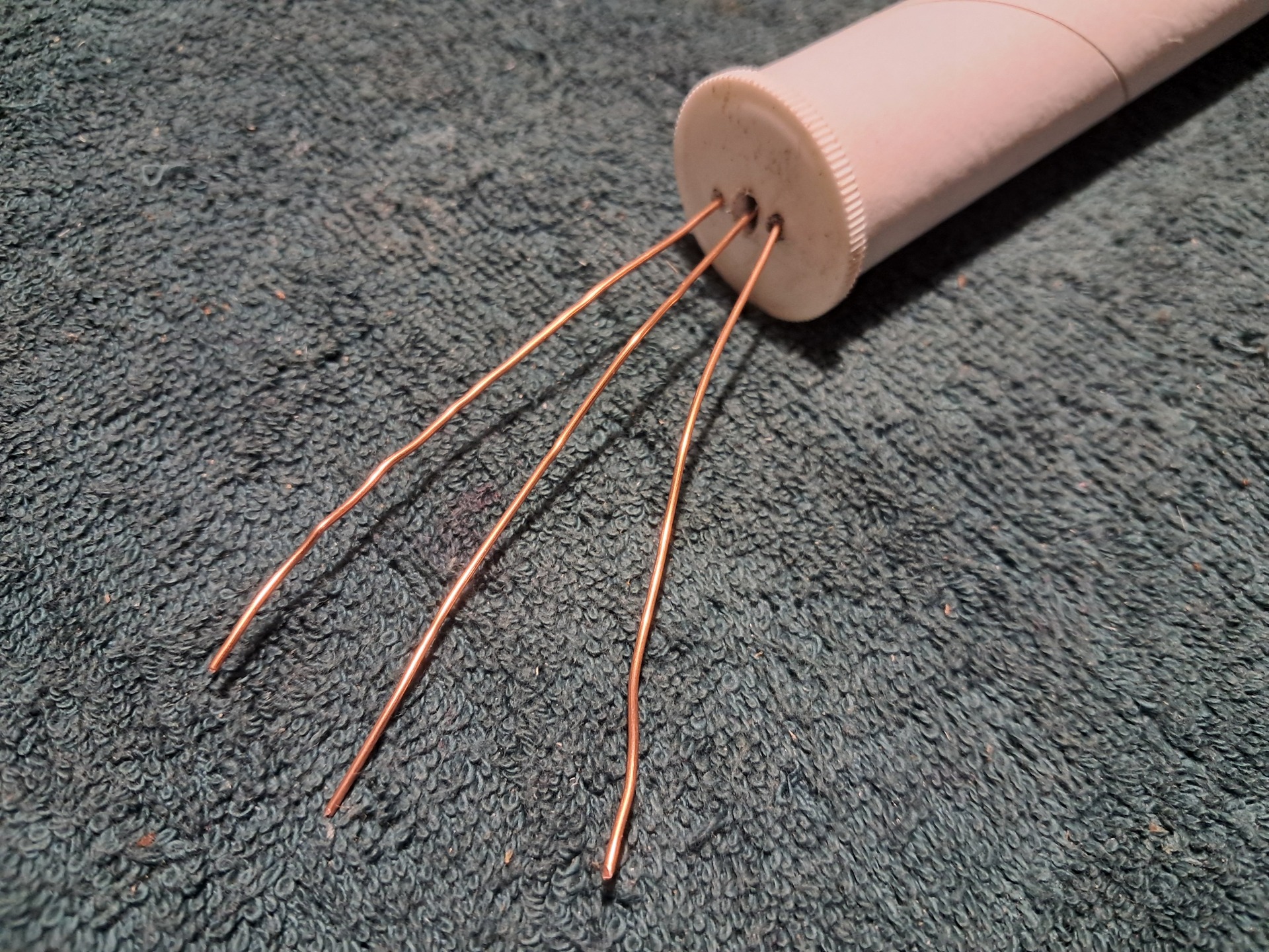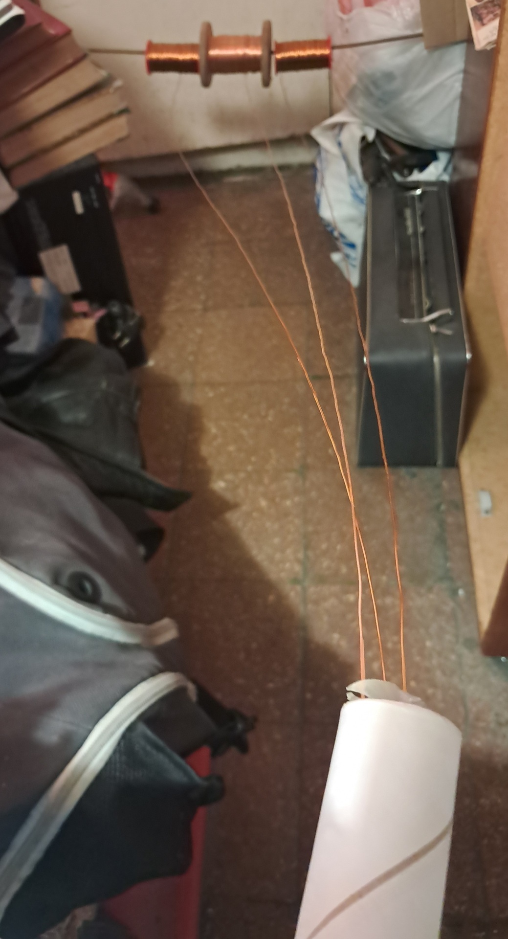 Beraknám a trifiláris tekercseléshez használt primitív "segédeszköz" fotóját, ami fékezi és szeparálja a 3 zománcozott rézhuzalt tekercselés közben.