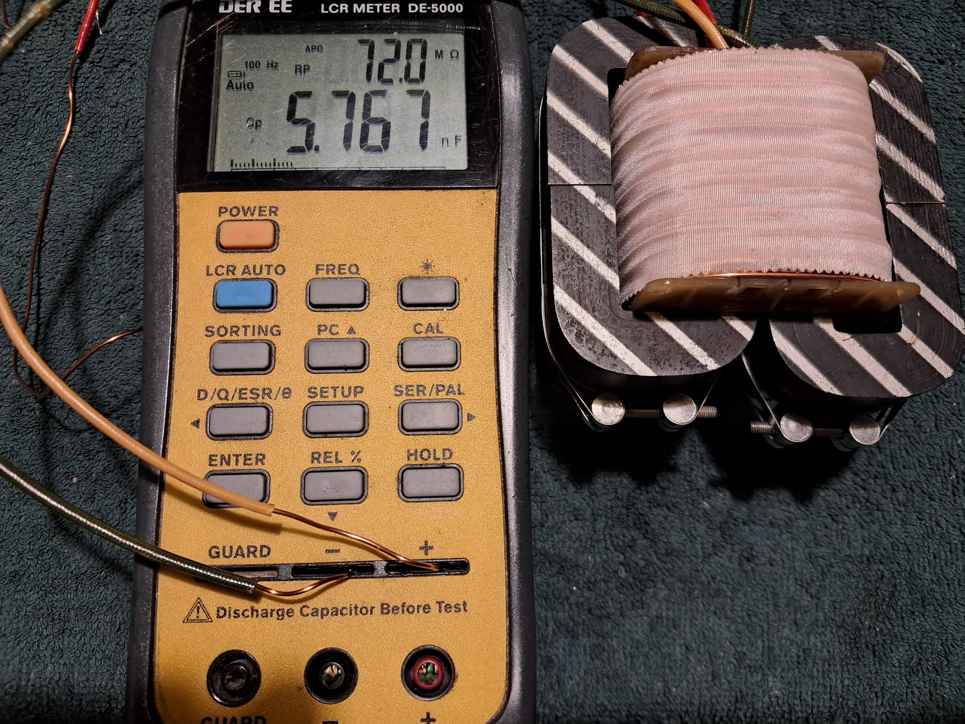 1. A drain és a source köri huzal közé betekert harmadik/kimeneti tekercs induktivitása 100Hz-en - 65,94mH (a elérési célként kítűzőtt Tango CH120m-2WD dual choke 60mH-s tekercsekkel rendelkezik) 2. A harmadik/kimeneti tekercs DC ellenállása - 0,77 ohm (a Tango CH120m-2WD egy tekercsének az DC ellenállása 0,69 ohm) 3. A drain köri L1 és az L2 közötti kapacításának értékének a mérése - 5,840nF 4. A source köri L3 és az L2 közötti kapacítás mérése - 5,767nF A trifiláris tekercselésű fojtó kapacításai alapvetően térnek el a hagyományos kimenő transzformátorokétól (sokkal nagyobb értékűek), mert itt a 3 vezeték igen szoros induktív és kapacitìv csatolásban van egymással. A jelentősége abban áll, hogy a mágneskörön kívül ez a direkt csatolás a nagyfrekvenciás átvitelt jelentősen kiterjeszheti. Azonkivül mivel fizikailag a drain és a source vezetékei között van, az unity coupled elve szerinti visszahatás részét is képezi. TJ.
