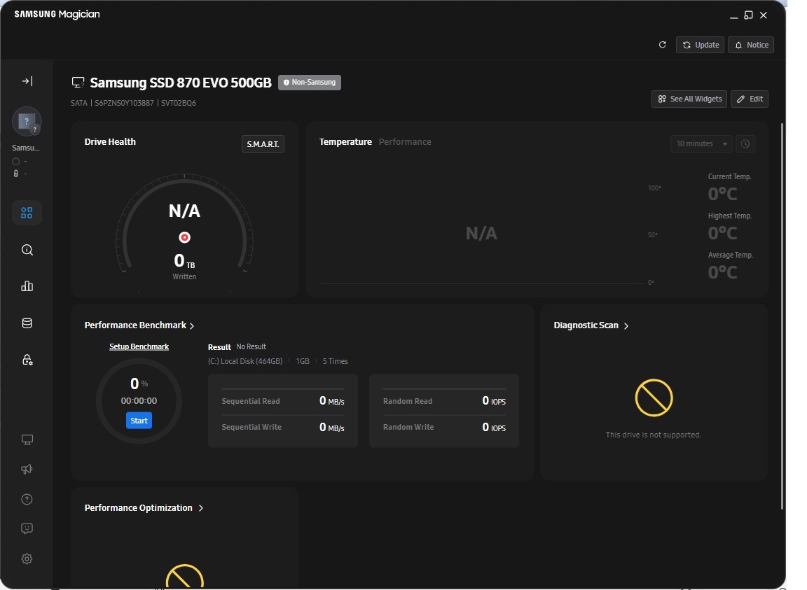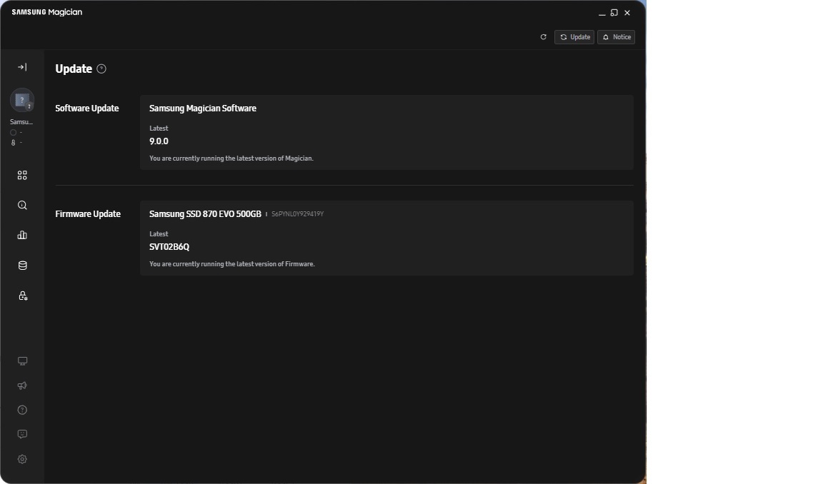 Samsung evo 870Hali!Napokban vettem samu evo 870 ssd-t. A samsung magician azt mondja rá hogy nem samsung... Vajon hamis? Van egy novemberi ssd-m is, azt rendesen felismeri. Sebességet nézve a hdtune progival az új elég lassúcska itt-ott.