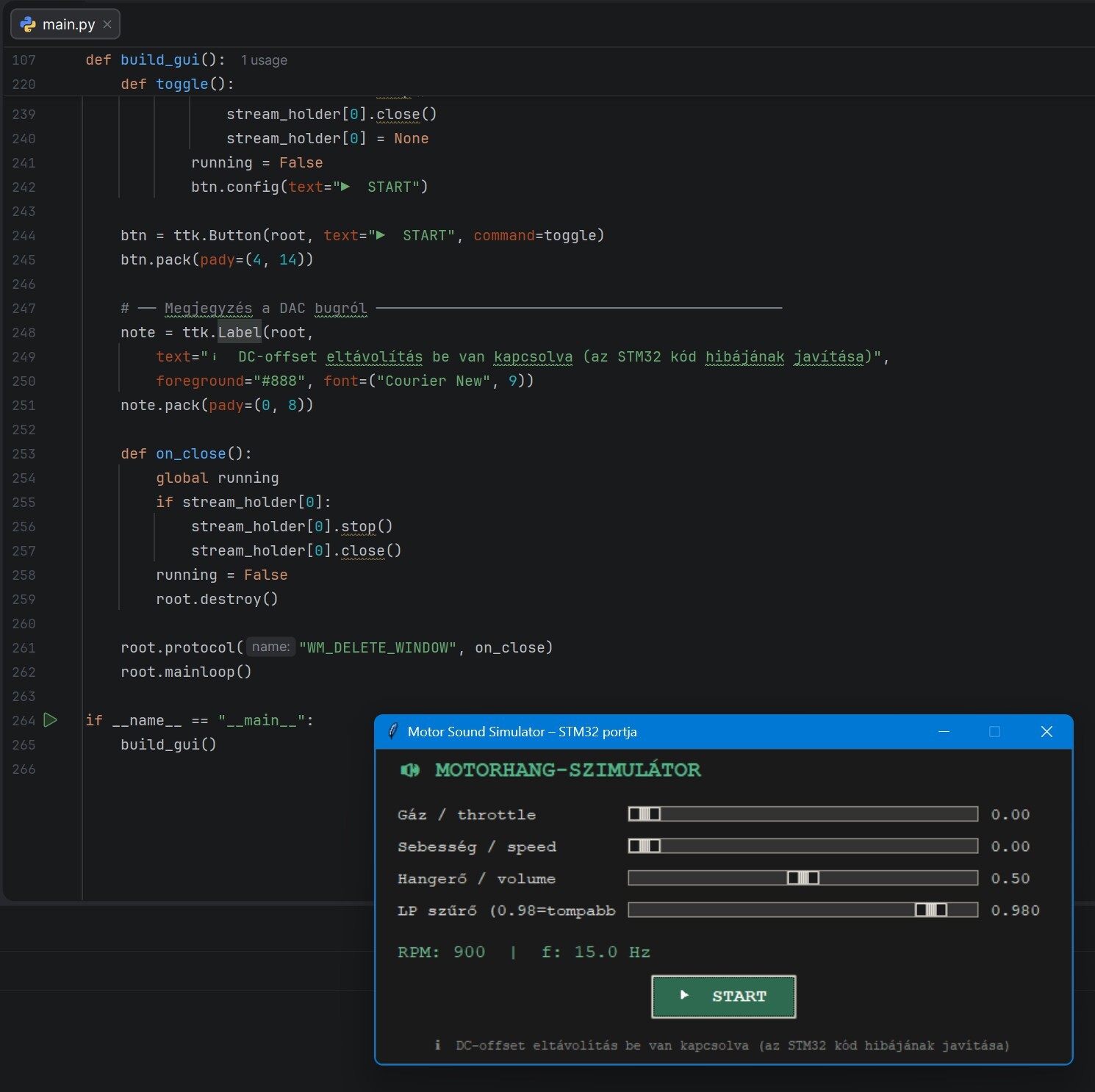 És természetesen a potmétert sokkal egyszerűbb bekötni, mint a HALL jeladót. Ezért a kérés kb az lenne, hogy egy potmétert az analóg bemenetre, egy kis erősítőt pedig a DAC kimenetére. De gondoltam, a feltöltött fájlokban benne van a szükséges információ. MotorSoundF407.ioc megfelelő részei? Én ugyan most látok ilyen kódot először,