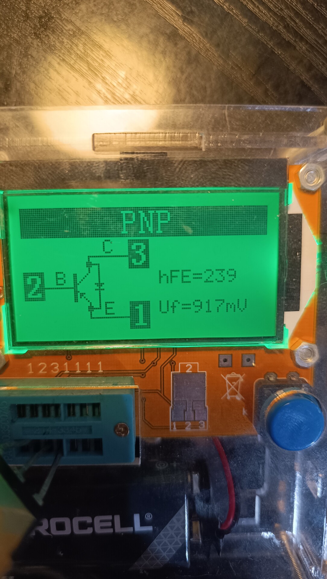 A PNP 917 mV-ja egyértelmű darlington. Ha van kéznél N-es nagyobb teljesítményű sima tranzisztorod, tedd rá mérődre, lássuk annál mit mutat?