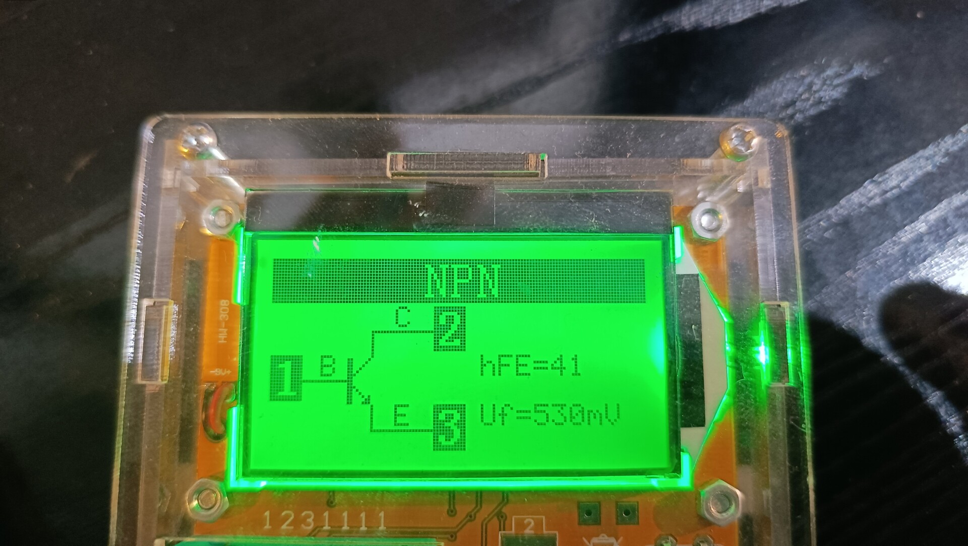 A B-E között a javítottnál 1,27V, az eredetinél 2,35V; a C-E között a javítottnál 63mV, az eredetinél 1,1V mérhető.