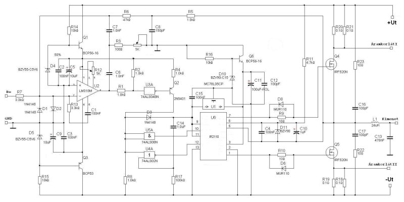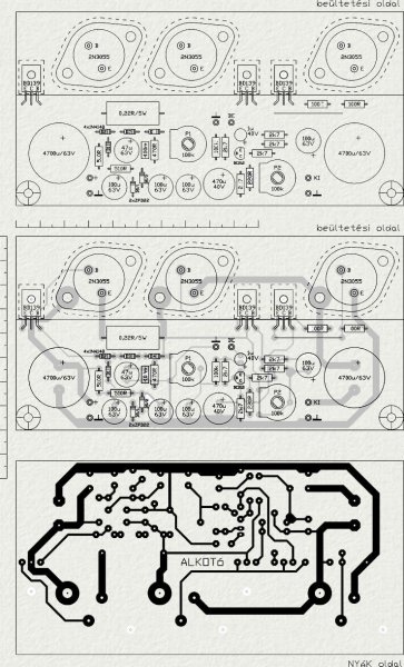 Sziasztok, én is keresek egy rajzot, kb 150 - 200 W-os végfok kéne, ami nem IC-s.
