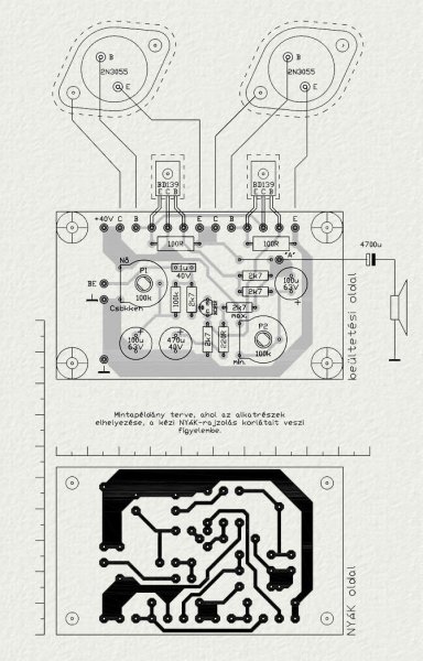kimenő trafot akkor alkamaztak amikor a csőves erősítőkről tértek átt a félvezetősőkre! általában a félvezetősőknél nem kell trafo mert a kimeneti impedanciája kelően kicsi!itt egy 20wattos A osztályu: