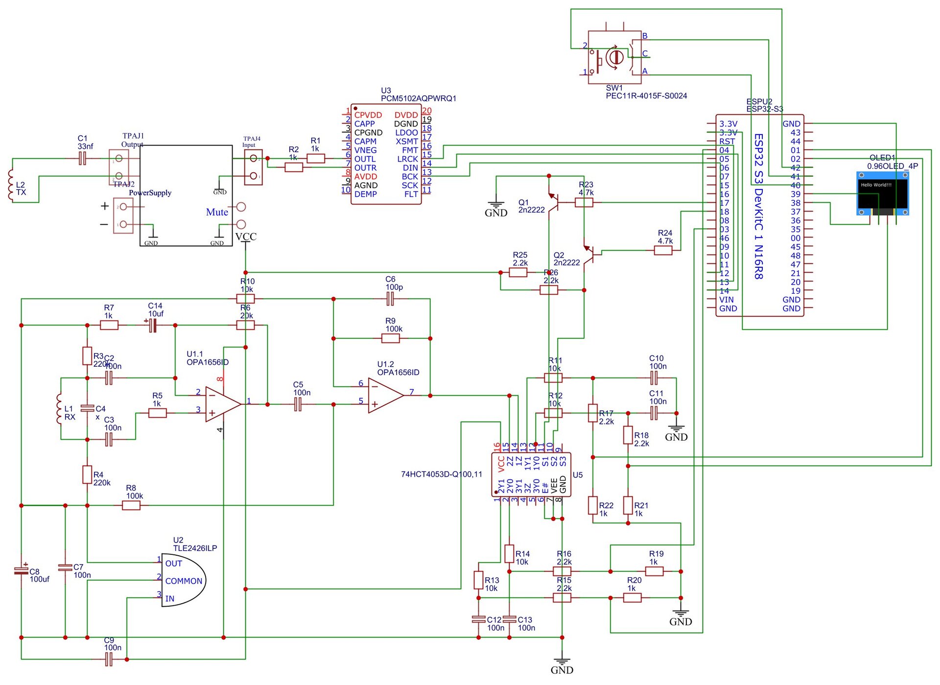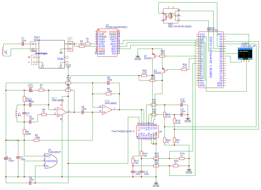 Az esp 0-3v között dolgozik, 3.3v a maximum. Az évek alatt bőven megcsappant a tudásom fémkeresők terén, amúgy sem volt túl sok, Lehet hibásan gondoltam, az rx tekercsnél valamennyire megfogja a jelet a 2db 220k ellenállás a féltápon legalább is ez volt a terv. Jfetes erősítő nincsen kőbe vésve, találomra választottam egyet ami rail to rail és egész jó.