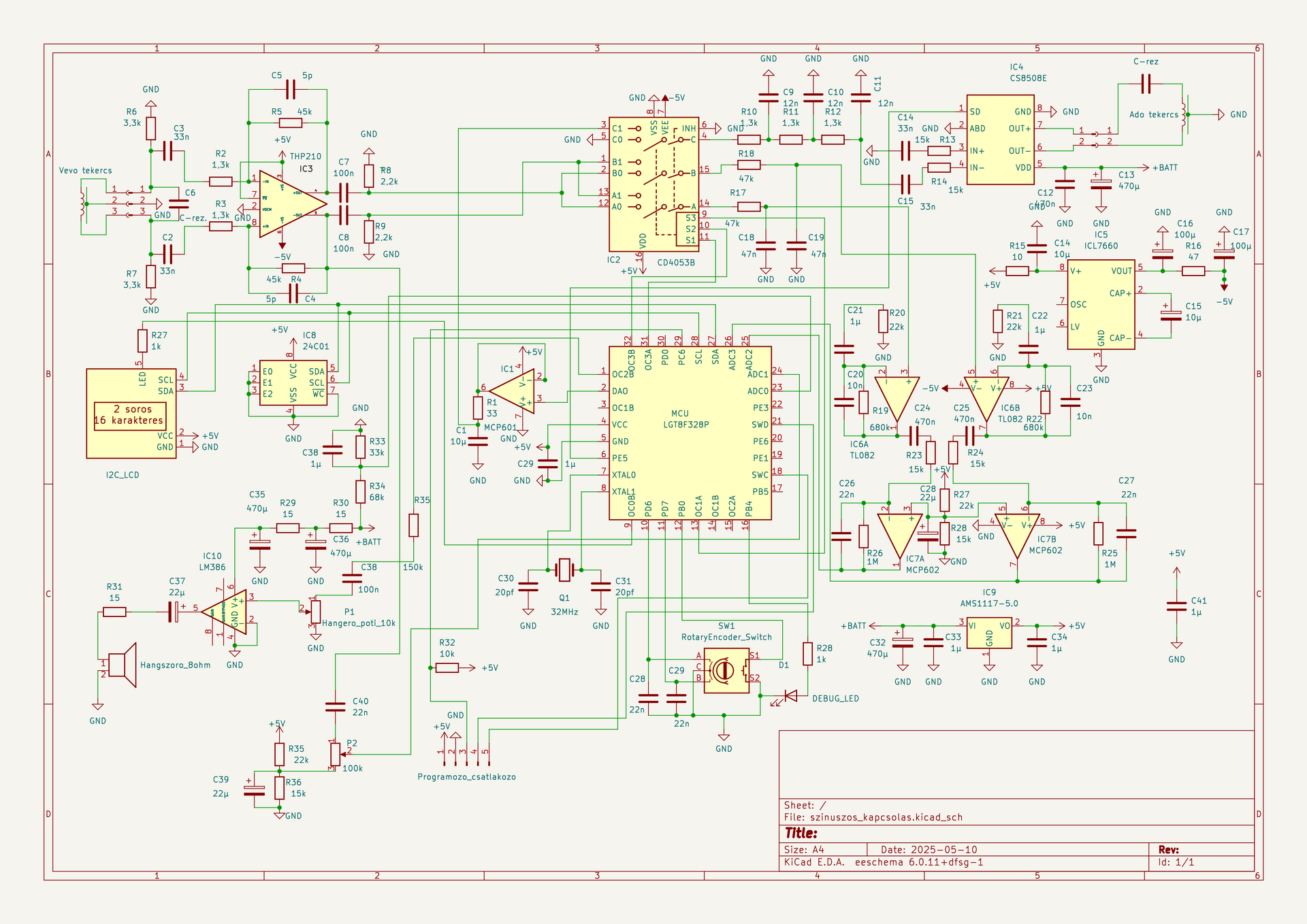 Első körben az adó tekercsen ébredő feszültséget egyenirányítottam, mead nagy impedanciás feszültség osztóval leosztottam, szűrtem és ezzel az egyen feszültséggel hasonlítottam össze a referenciát és szabályoztam a szinusz amplitúdóját. Sok szenvedés után úgy éreztem, hogy mehetek terepre kipróbálni. Terepen a gép nagyon szépen körtyögött és cicergett. Az idegeim kitépése után elfogadtam a kudarcot.