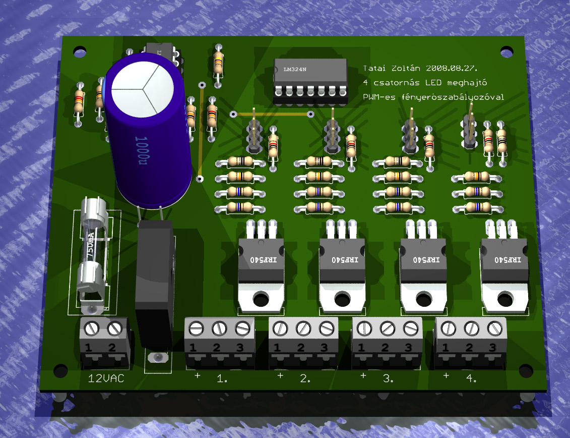 Lemaradt, hogy az első képen a pwm-es meghajtó látványterve van, a másodikon a nyák, míg a harmadik képen 20db nyákocska a ledeknek. (bár a képek magukért beszélnek