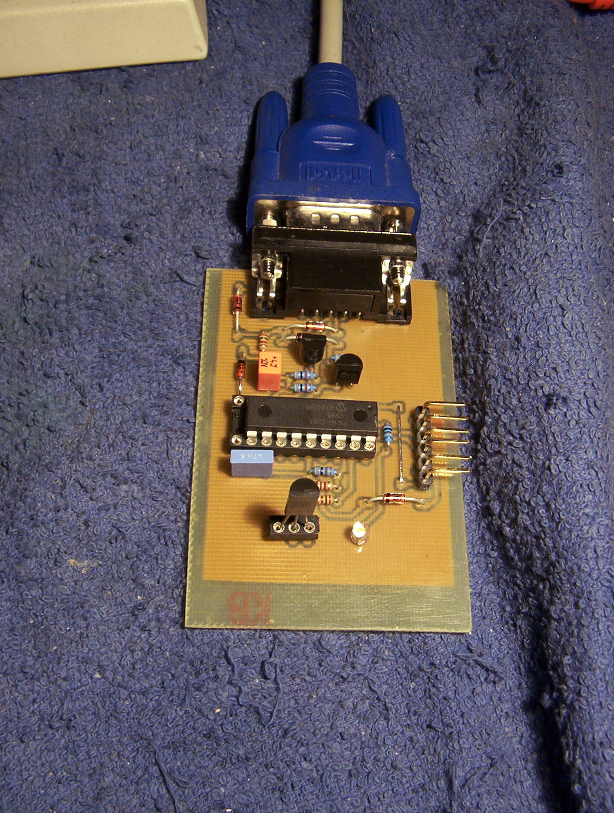 Én most készültem el a képen látható "izé"-vel. Ez tulajdonképpen egy olyan alkalmatosság, amivel DS1820-as és DS1821-es hőszenzorok adatait lehet lekérdezni, a 1821-esnél be lehet állítani a termosztát módot és a billenési hőmérsékleteket.