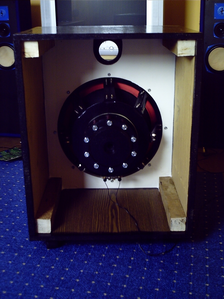 Igen rendesen szól mint egy gyári hangszóró csak mivel nincs erősítőm és a tekercs 2ohm-ra lett számolva igen nagy hangerőt elbír. És tesztelni kéne hol a határ. Csak már faanyagom nincs hátfalnak, majd kerítek. Mivel eddig egy fillért sem fizettem semmiért olcsón kijött az egész
