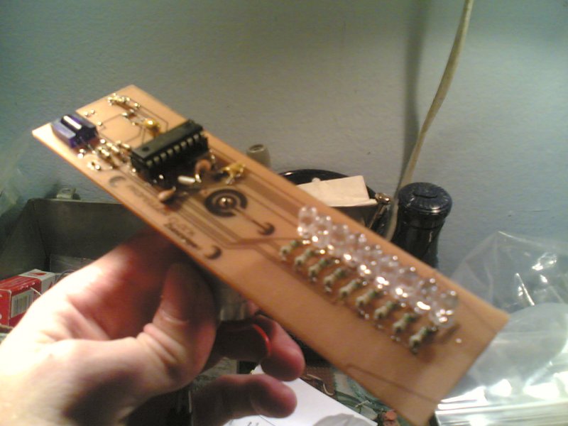 A második dolog az a proli által megtervezett basszusra villogó beépített verziója, és egy kép a még nem beültetett nyákról. Erről már csak 3 ellenállás hiányzik, azokat még nem sikerült beszereznem. A képek sajnos nem a legjobbak, a szobámban található fényviszonyok miatt jobbat nem tudok készíteni. Hamarosan közlök képet a PIC-es projectemről is (ami működik )