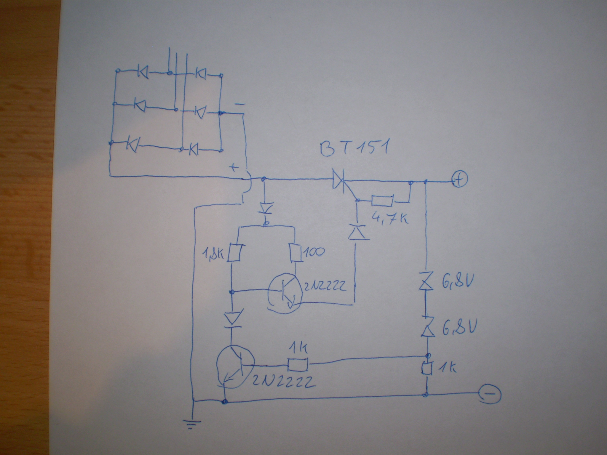 Köszönöm a gyors választ! holnap ki fogom ezt probálni. arra gondoltam hogy fogok eggy etz dióda hidat rá kötöm a 3 fázist és utánna berakok egy feszszabot arra gondoltam amiben a 2db 2n2222van meg a bt151 vagy megépítsem ezt: Bővebben: Link Szerinted meik jobb ötlet? vagy esetleg más kapcsrajz?